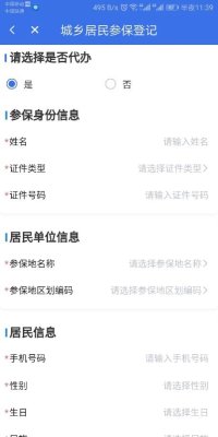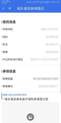 填写城乡居民参保登记信息,包括参保身份信息、居民单位信息、居民信息和参保信息,带“*”项为必填项,置灰项根据已有信息自动导入,不能填写,只能查看,其他为选填;
