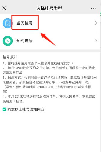 选择“当天挂号”。