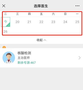 选择日期(当天)后点击“核酸检测”。