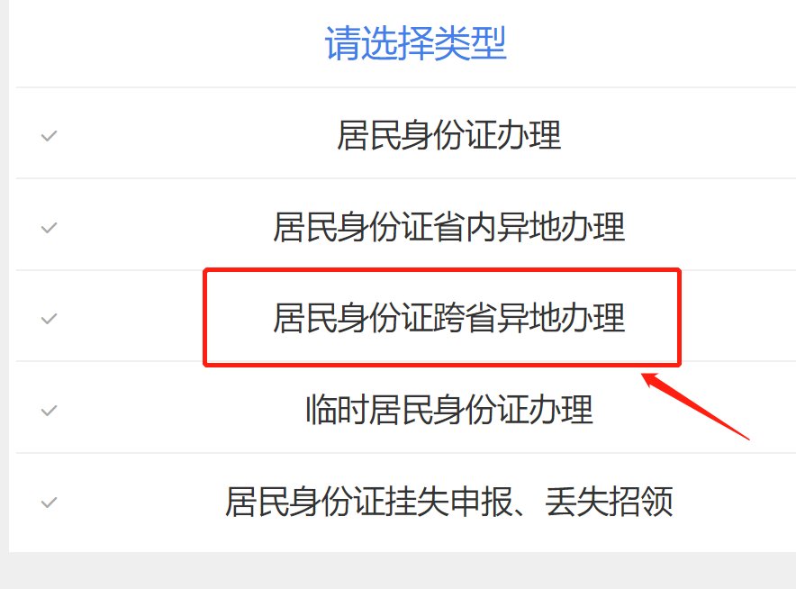 第二步:选择类型-【居民身份证跨省异地办理】