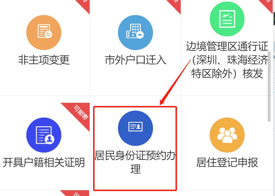 第一步:进入成都公安微户政服务大厅,首页【我要办证】板块,点击【居民身份证预约办理】