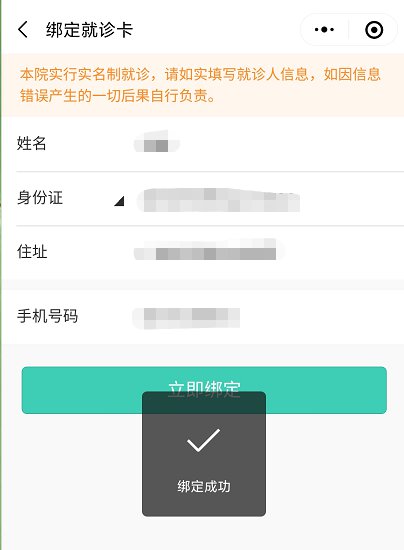 添加就诊人,填写姓名、身份证等相关信息后点击“立即绑定”