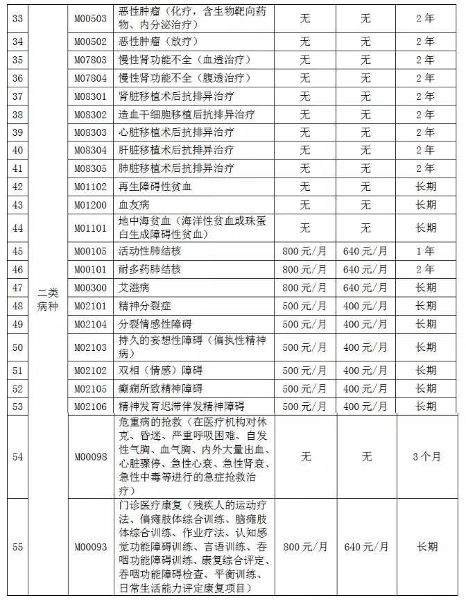 (二)二类病种:门诊治疗无起付线,住院治疗终身只自付首次起付线(其中六类重性精神疾病无起付线)。根据医疗机构级别以及参保险种的不同,报销比例在70%-90%之间。