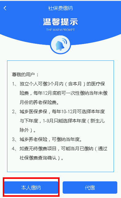 (3)点击“本人缴纳”或“代缴”;