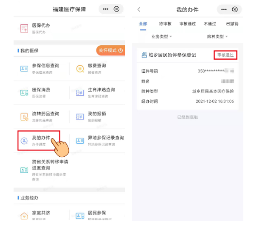 3.在我的医保栏目点击【我的办件】,查看业务办理进度。