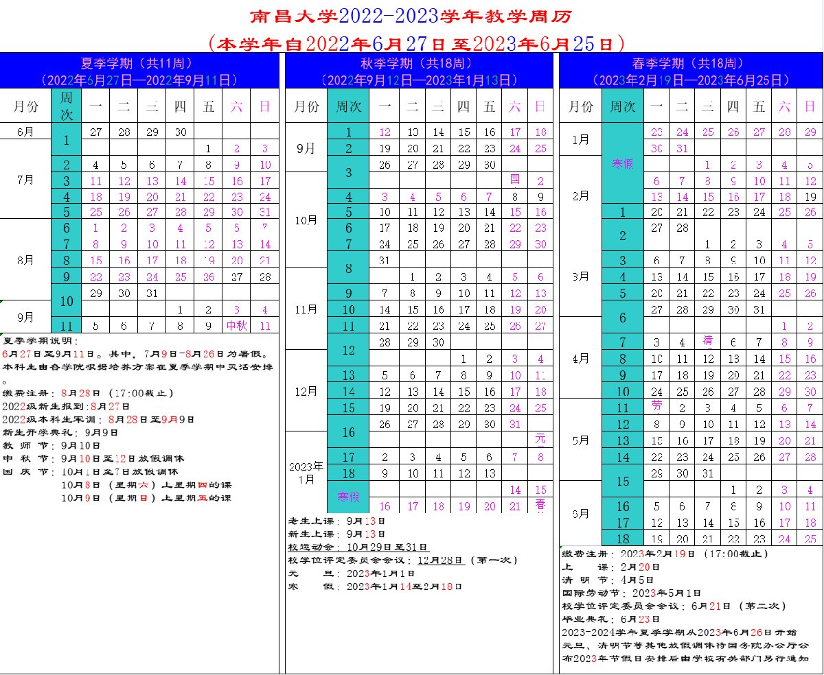 ➤2022-2023学年南昌大学寒假放假及开学时间安排:
