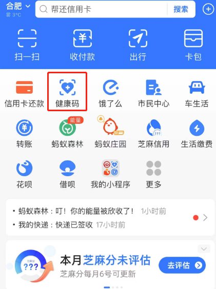 1、直接点击首页上方“健康码”按钮,如没有可在上方搜索栏搜索并进入。