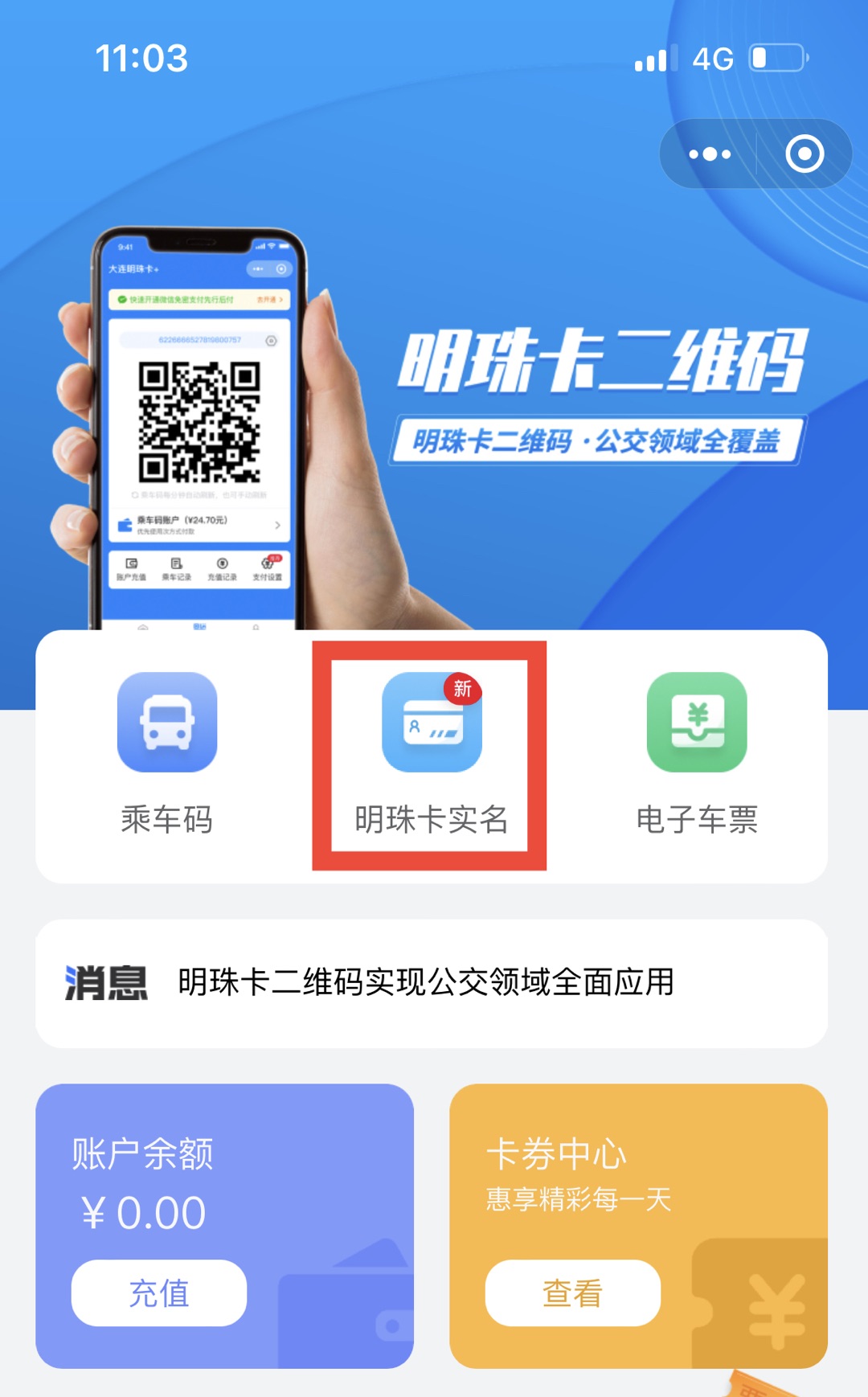 一、扫描二维码进入大连明珠卡微信小程序。
