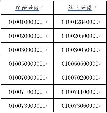 以下号段内的卡片不支持“通过NFC输入”获取卡号: