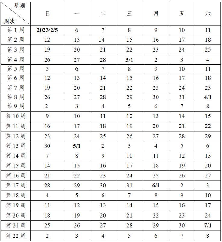 春季校历2023年