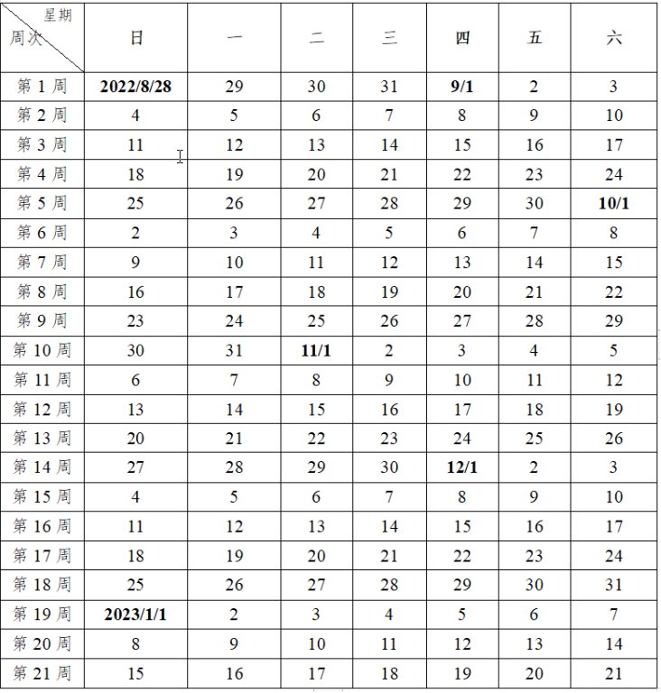 秋季校历2022年
