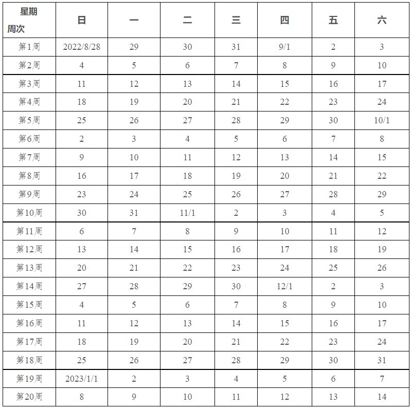 玉林市中小学2022~2023学年度秋季学期校历