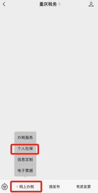 第一步:微信搜索“重庆税务”公众号,进入公众号“网上办税”点击“个人社保”,注册电子税务局账号(账号可以交自己的大学生医保,也可以代缴),进入“社保登录”。