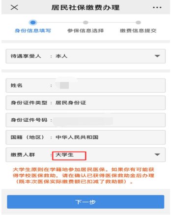 第二步:选择“居民社保缴费办理”。选择“本人”或者“他人”,填写缴费人信息,选择“大学生”身份。