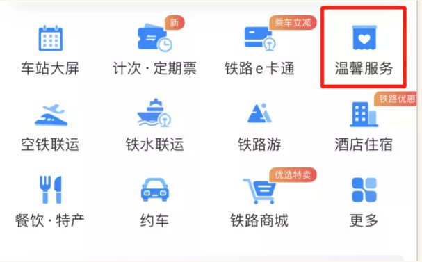 第二步:打开铁路12306App,在首页点击【温馨服务】。