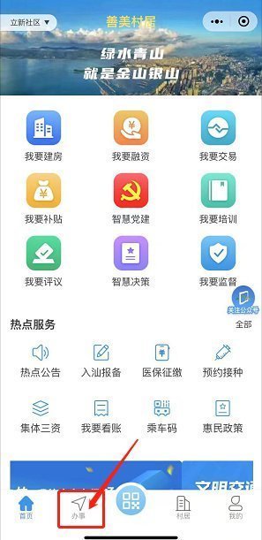 第一步:进入“善美村居”小程序-点击办事