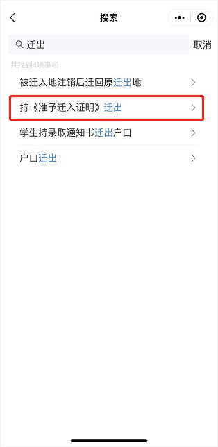 第二步:搜索迁出-点击持《准予迁入证明》迁出-选择地区-预约办理