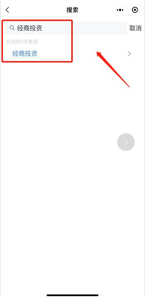 第二步:搜索经商投资-点击经商投资-选择地区-预约办理