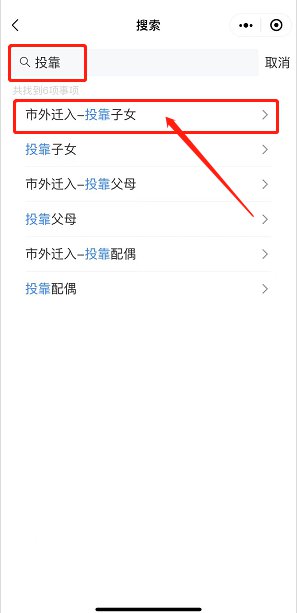 第二步:搜索投靠-点击市外迁入-投靠子女-预约办理