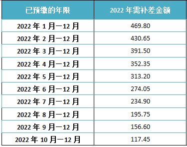 2、缴费金额:本次缴纳的费用为2022年医疗保险补差,具体金额详情见下表: