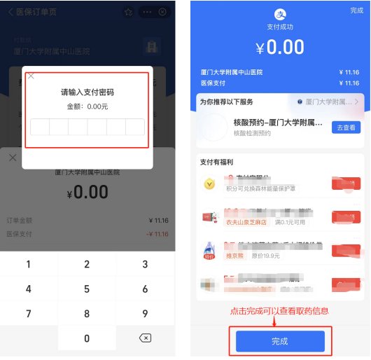 4、确认费用无误后,输入支付密码并付款。支付成功后记得点“完成”哦,点“完成”才可以查看取药信息。