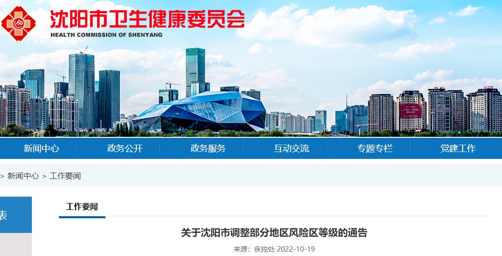 关于沈阳市调整部分地区风险区等级的通告