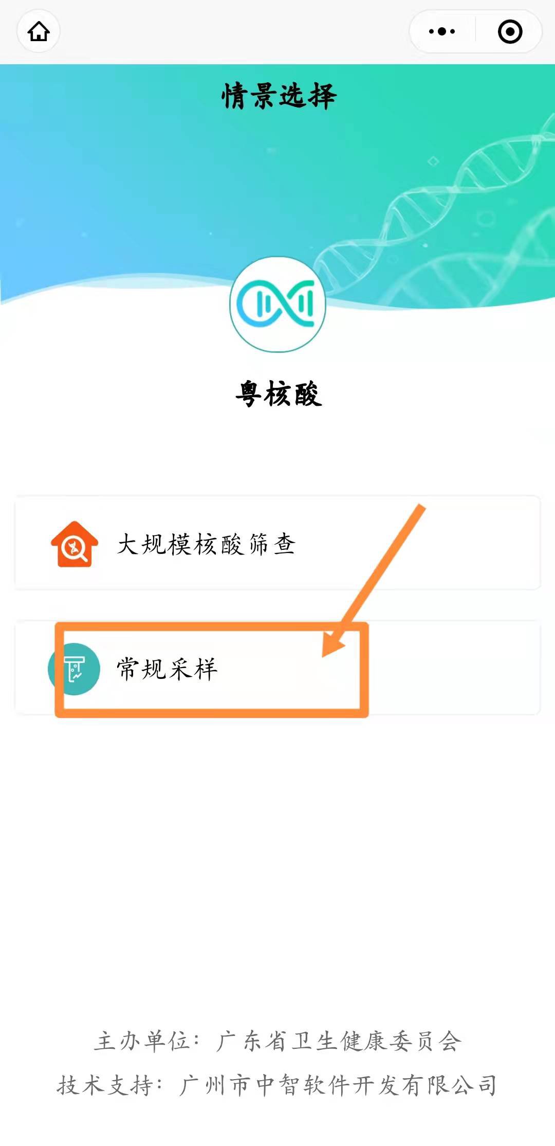 1、微信"扫一扫"粤核酸小程序的葵花码或∶微信搜索"粤核酸3"小程序