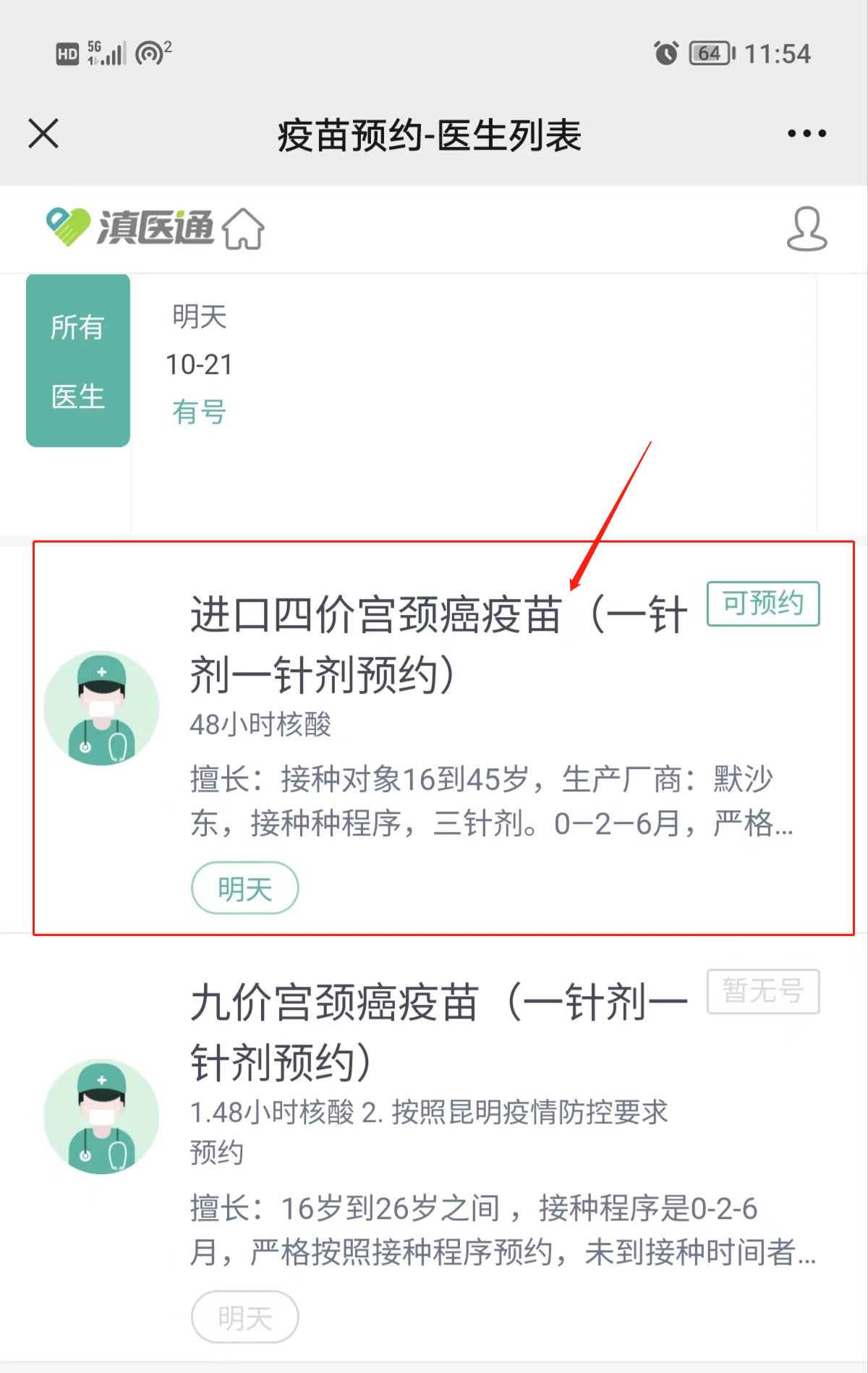 第四步:显示“可预约”的,进行预约抢号。
