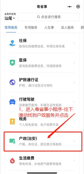 2、通过粤省事小程序-户政服务进行线上办理