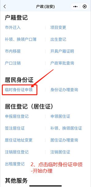 临时居民身份证申领