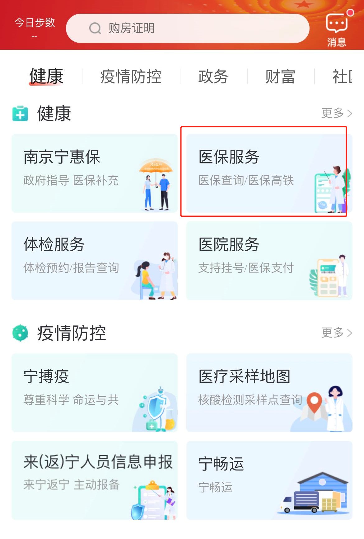 进入“我的南京app”——健康——医保服务