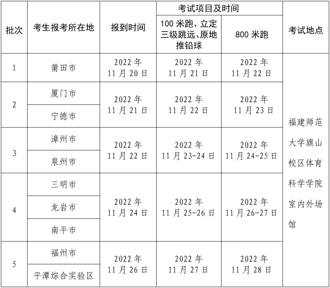 福建2023年普通高校招生体育类专业省级统一考试(时间+地点)