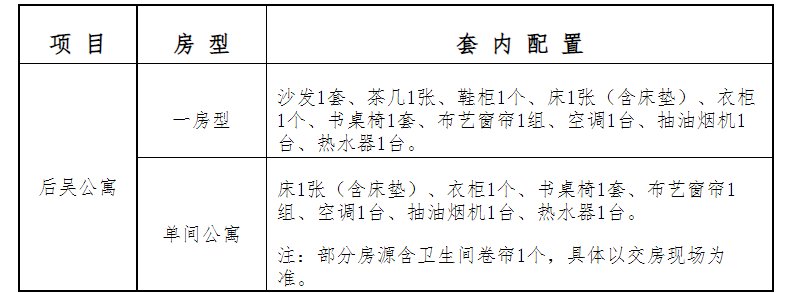 房型使用要求:本批次的房源以成套的方式办理承租或退租,由承租单位作为集体宿舍安排符合条件的职工入住。