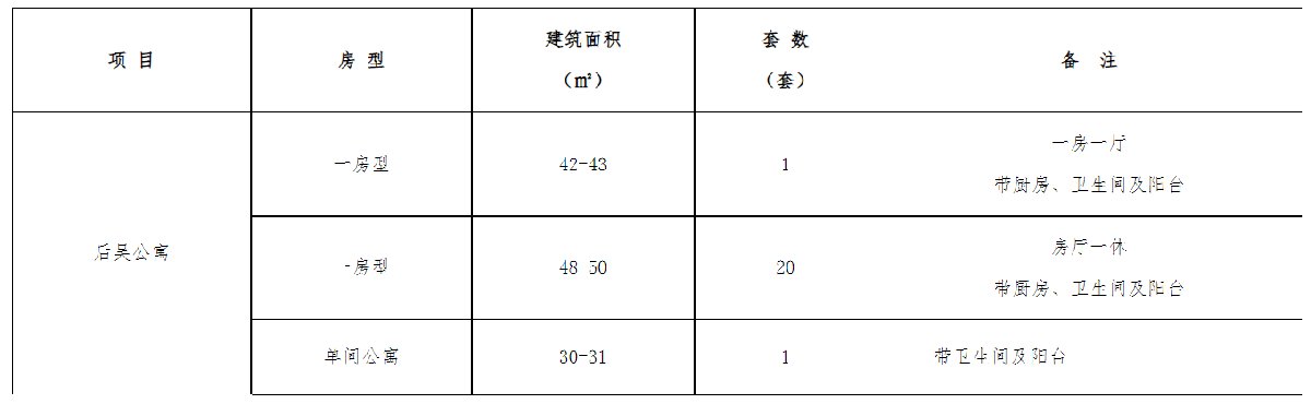 本批次公共租赁住房房源为后吴公寓项目,共计房源22套,租赁期限至2023年8月31日止。