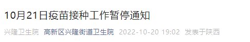 因上级工作安排,10月21日所有疫苗全部暂停接种,相关业务暂停办理。具体恢复时间另行通知。