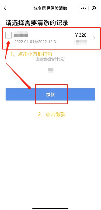 第四步:确认清缴记录—点击缴款