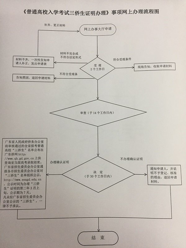 5.第五步:领取结果。广东省人民政府侨务办公室将审核通过的全省报考普通高校“三侨生”名单公布在广东侨网(http://www.qb.gd.gov.cn)上供查询至当届高考录取结束。