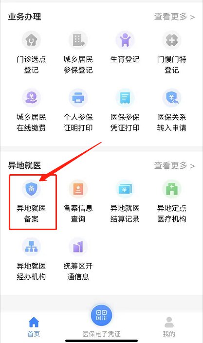 1、扫描以上小程序码后,往下滑动,找到并点击异地就医备案进入登记功能