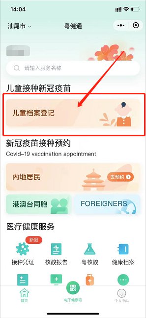 第一步:进入“粤健通”小程序-点击儿童档案登记