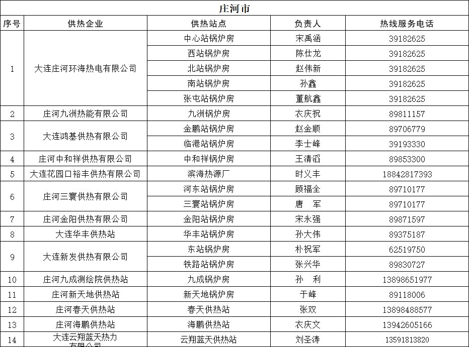庄河供暖公司电话: