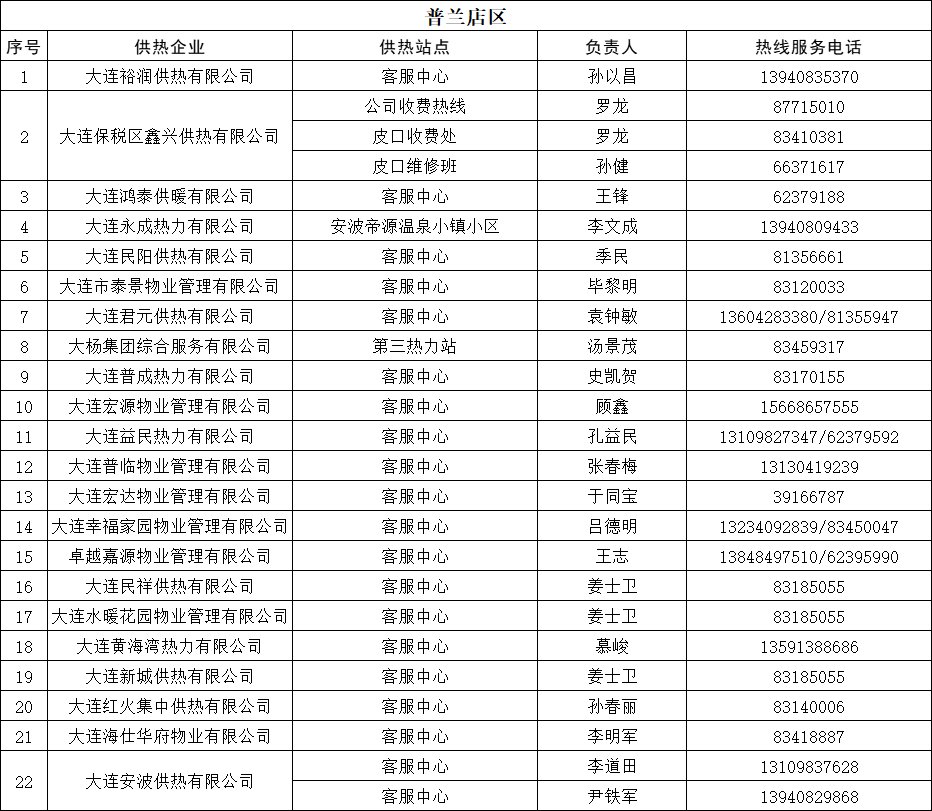 普兰店供热公司报修电话: