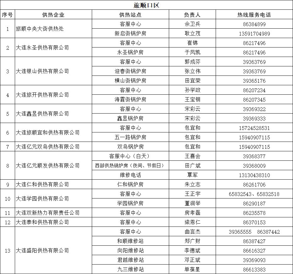 大连旅顺口区供热办投诉电话:86181810、86181560