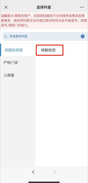 3、选择科室-核酸检测