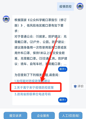 5、点击“关于离宁来宁疫情防控政策”