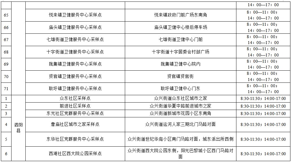 为全力做好疫情防控和服务保障工作,方便重点人群、愿检人群、“落地检”人群开展核酸检测,全市部分县区核酸检测采样服务点采样点位和采样服务时间有所调整,现予以第二次公布。后期将根据需要和疫情变化动态调整,请及时关注采样点提示信息。