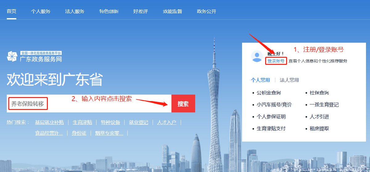 2、搜索框输入“养老保险转移”点击搜索