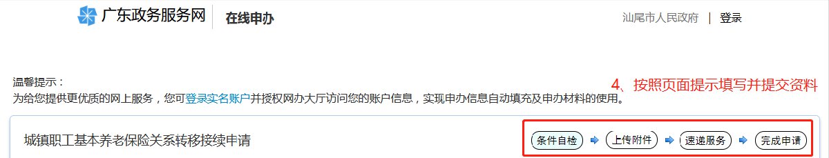 汕尾城镇职工基本养老保险关系转移接续申请网上办理流程: