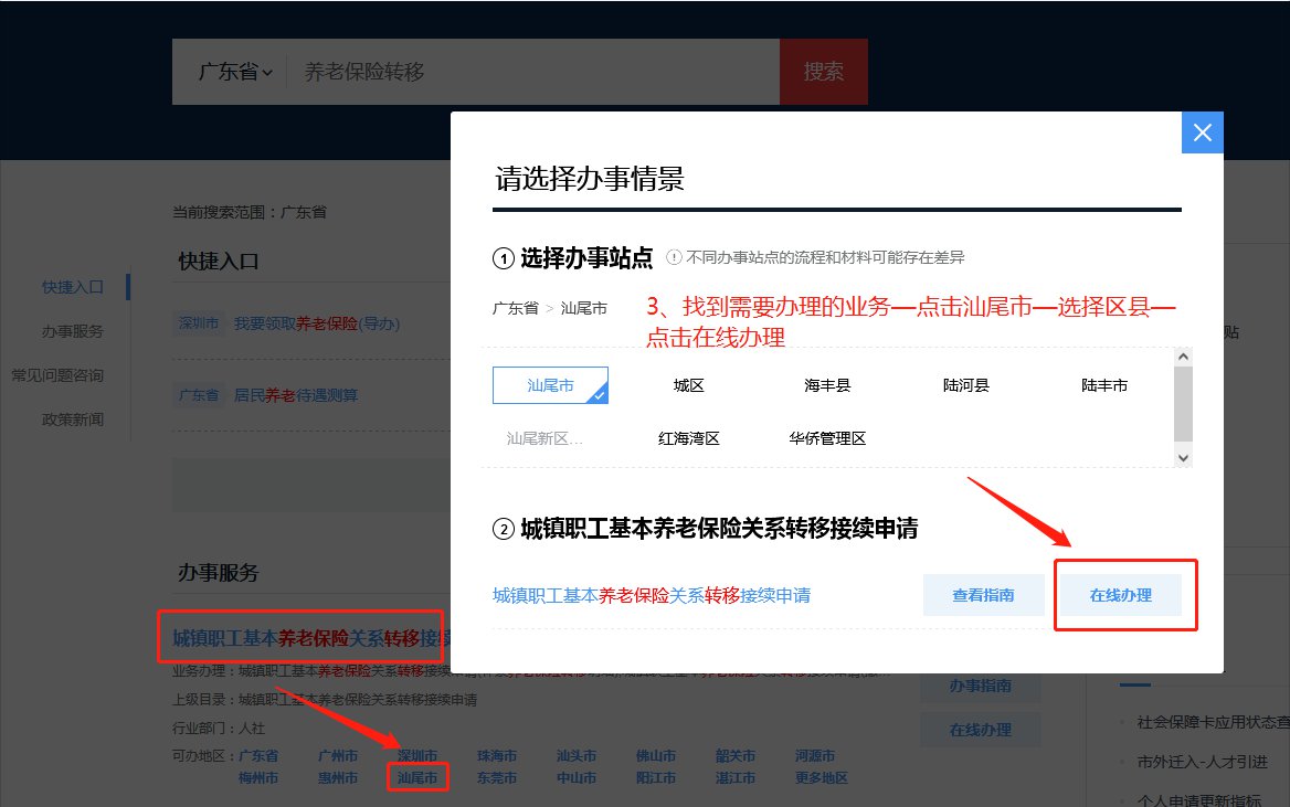 汕尾城镇职工基本养老保险关系转移网上申请指南