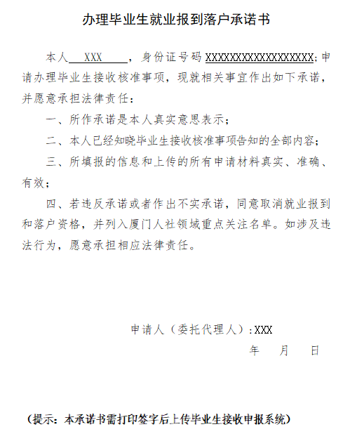 厦门毕业生就业报到落户承诺书模板+下载入口