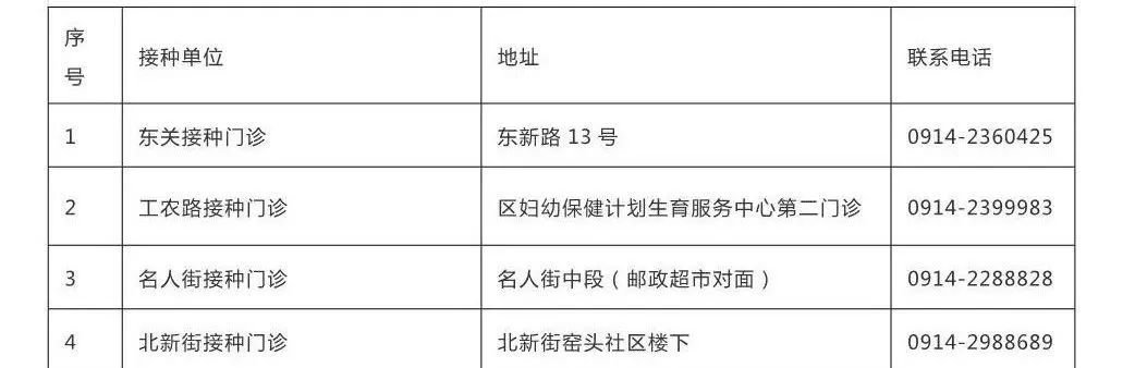 商州区北新街预防接种门诊、工农路预防接种门诊、名人街预防接种门诊、东关接种门诊号源